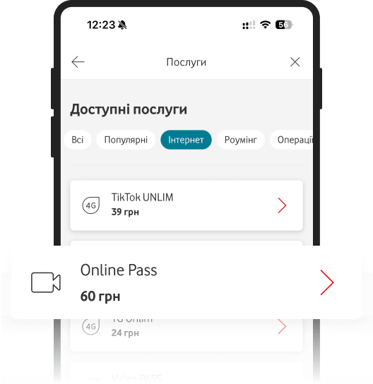 Увійдіть у My Vodafone і в розділі «Доступні послуги» знайдіть послугу «Online Pass»
